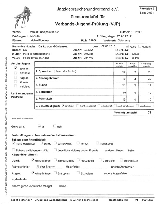 Deutsch Drahthaar "vom Teichmoor" - Zeugnisse Darko vom Gördensee